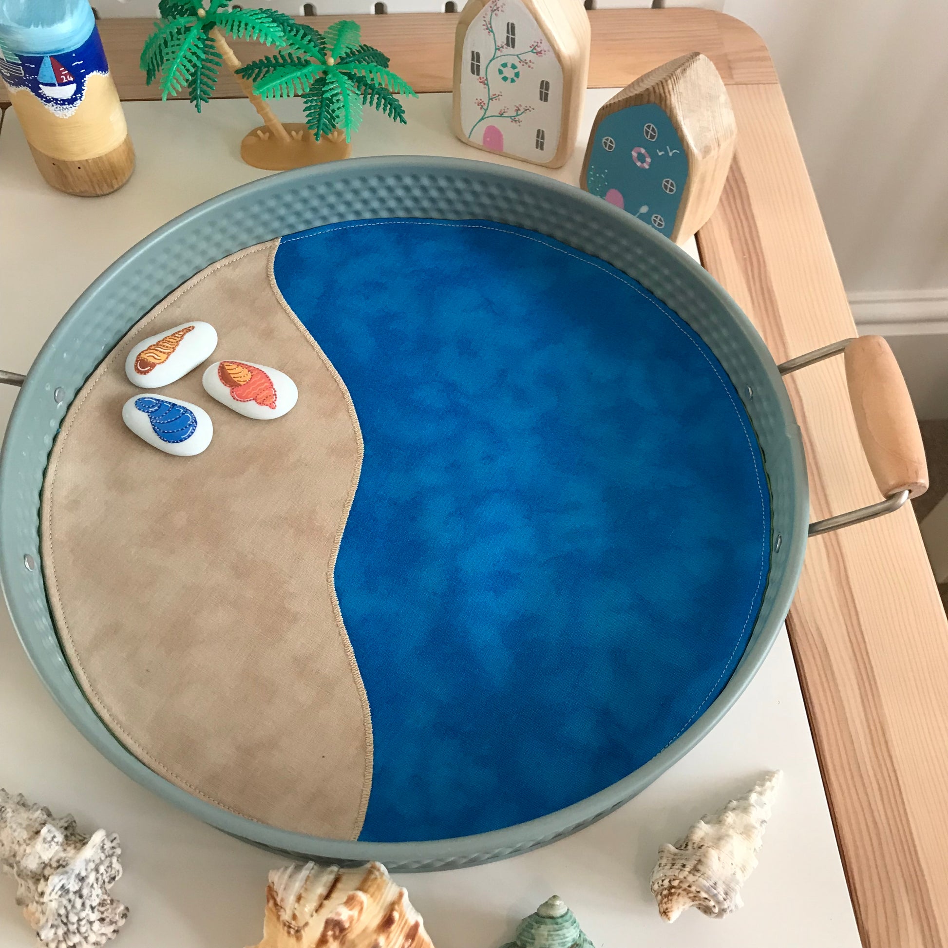 Play Mat 2 - 39cm diameter - Mid Blue Ocean and Sand Beach - Wavy line version - Brown Plain Reverse - £18.00