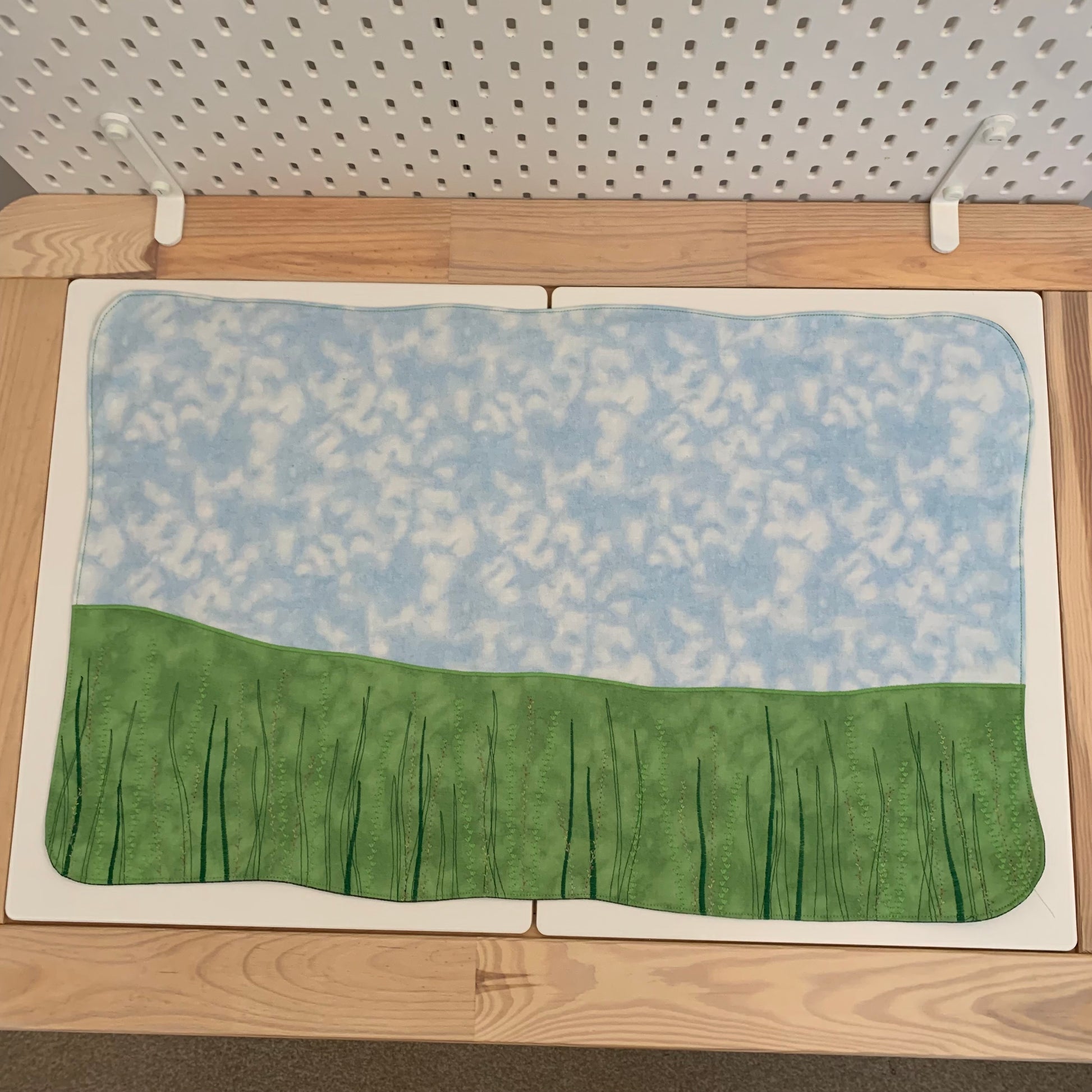 Extra Large Meadow Play Mat - 4 kinds of grass themed stitching in green. Light Green and Light Blue with Black Reverse.