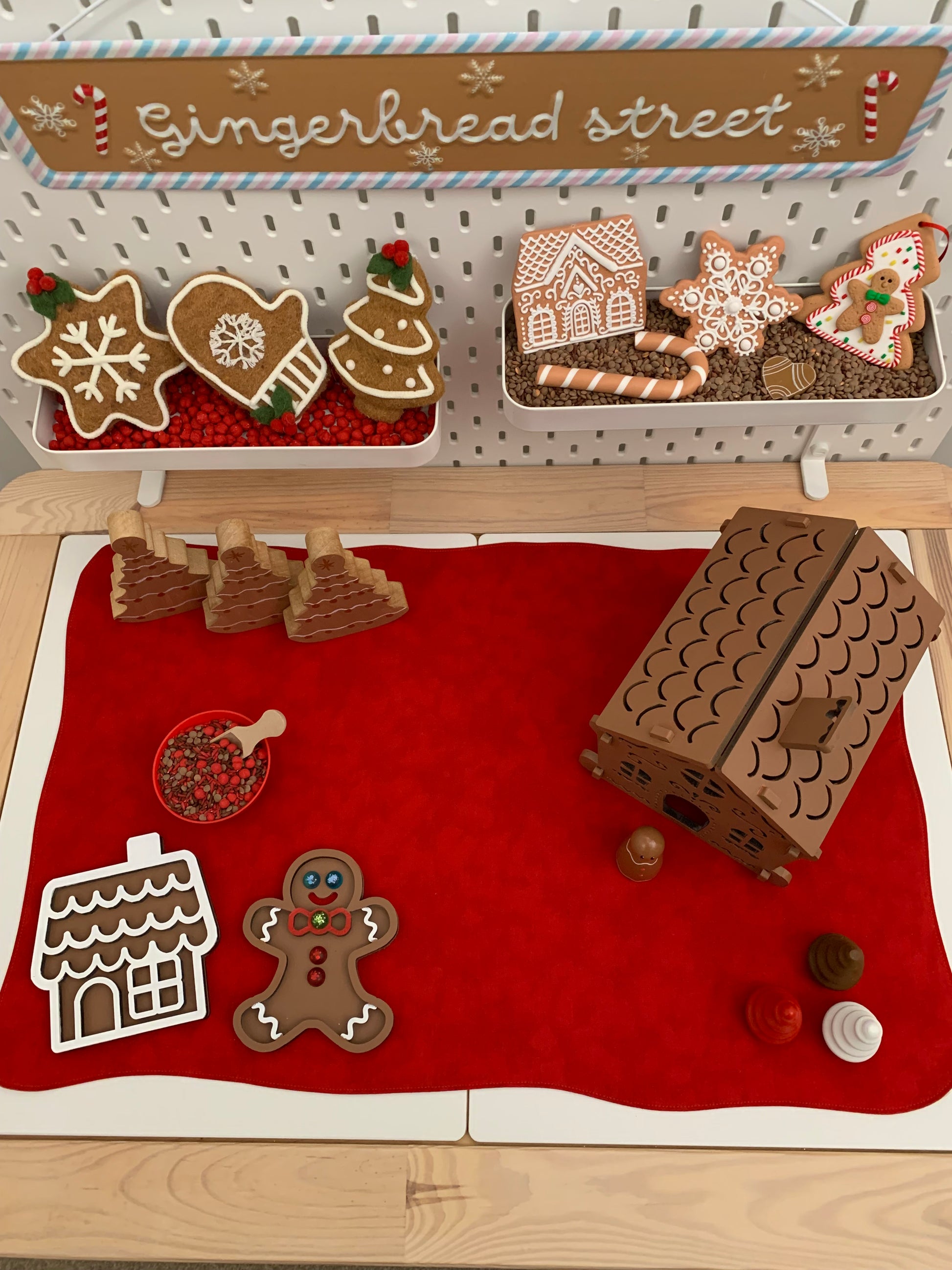 As the mat is double sided; this offers open ended play situations and encourages imagination. The red side is perfect for Christmas, Valentines, Chinese New Year, Space, Autumn etc. and the Sand is great for more seasonal play, dinosaurs, bugs, construction and safari too…or wherever your imagination takes you.