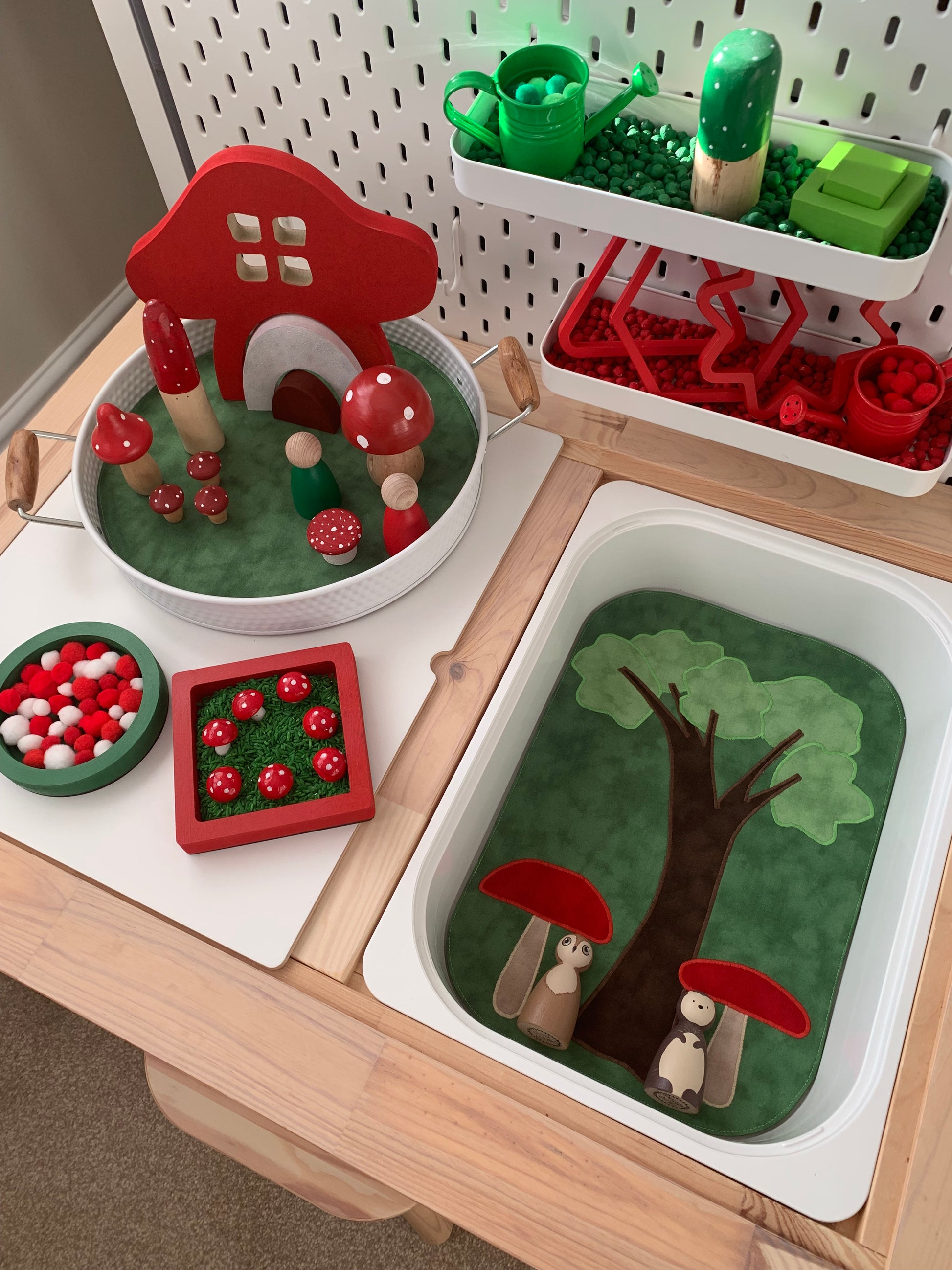 IN STOCK - UKCA Tested - Tree and Mushrooms themed Tray Play Mat – Lightweight, washable, reversible and offers endless small world play options.