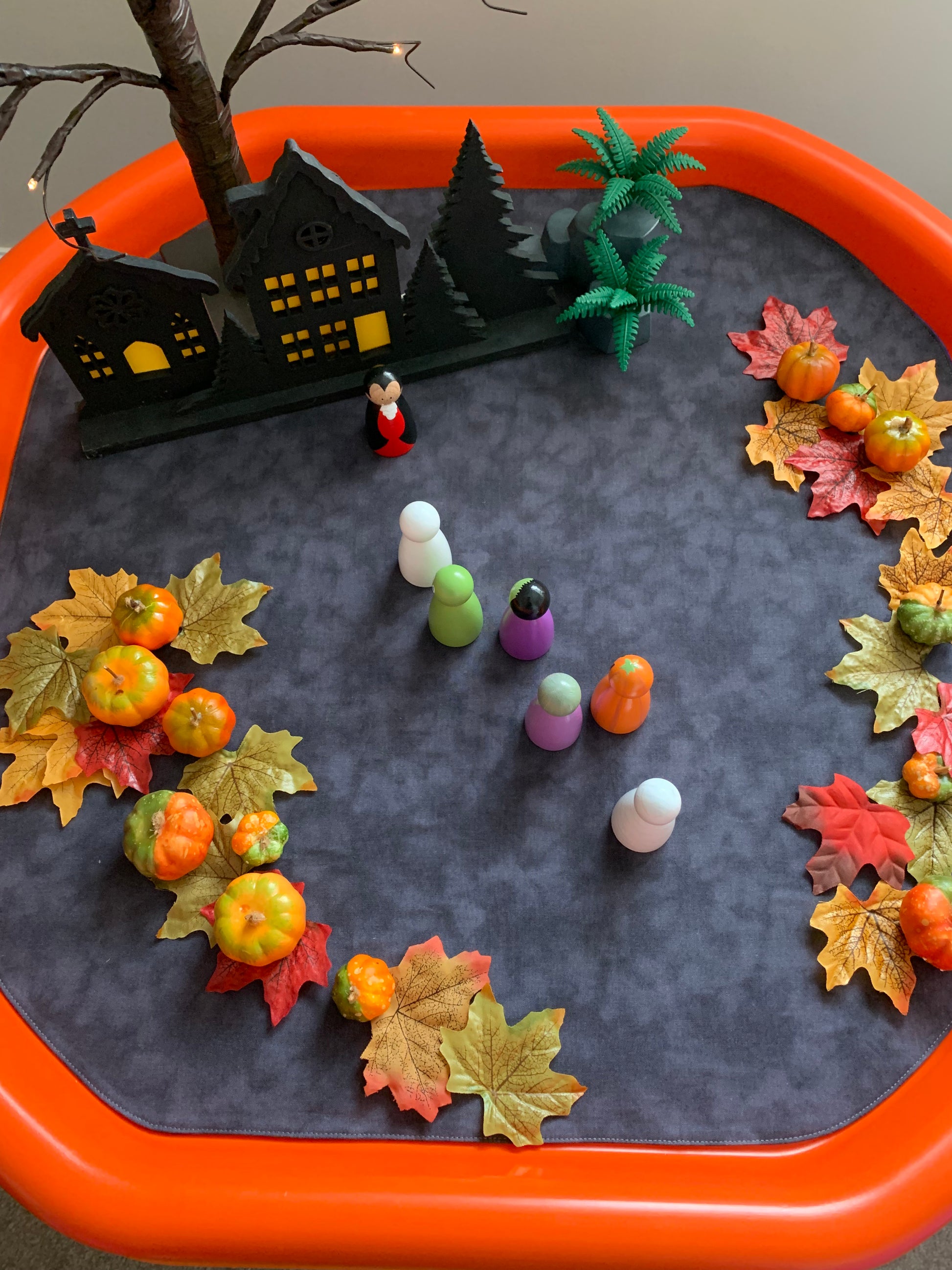 The play mat is completely open ended and reversible...so offers lots of play potential...Perfect for Space, Construction and of course lots of spooky play.