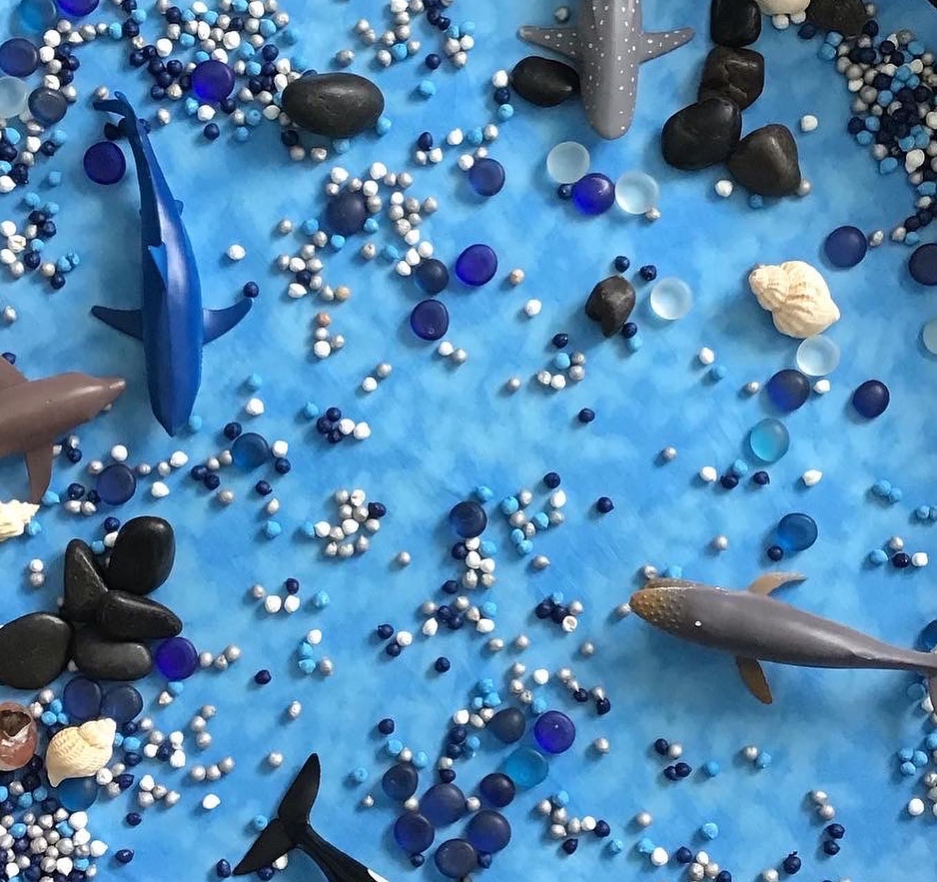 The play mat is completely open ended and reversible...so offers lots more play potential...and has one side that is Light Green which is perfect for Town, Farm, Wildlife Park/Safari, Dinosaur, Teddy Bear picnic, Bugs, Seasonal Play, Woodland play…and the other is Mid Blue and perfect for pirates, mermaids, coral reefs and oceans, space, polar etc.